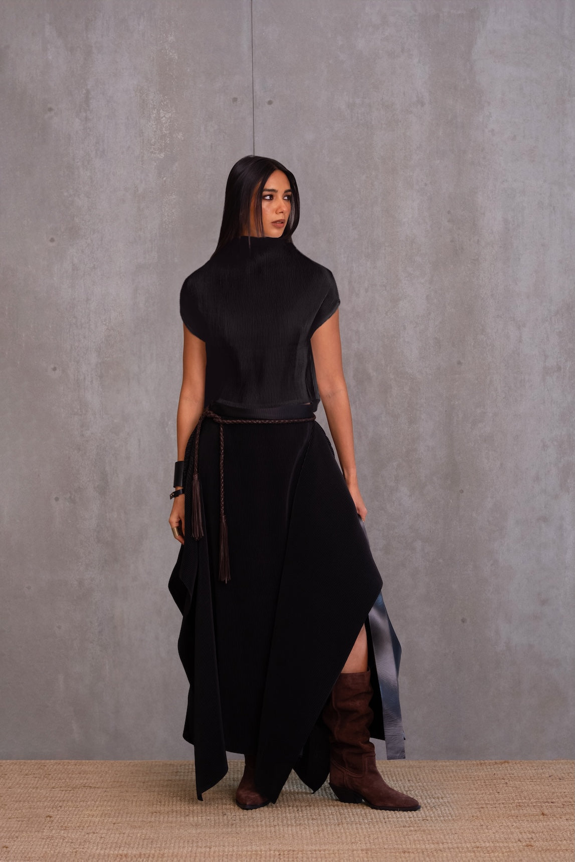 When not in use, roll in the direction of the pleats and avoid placing beneath a pile of clothes. Do not hang, steam or iron.
