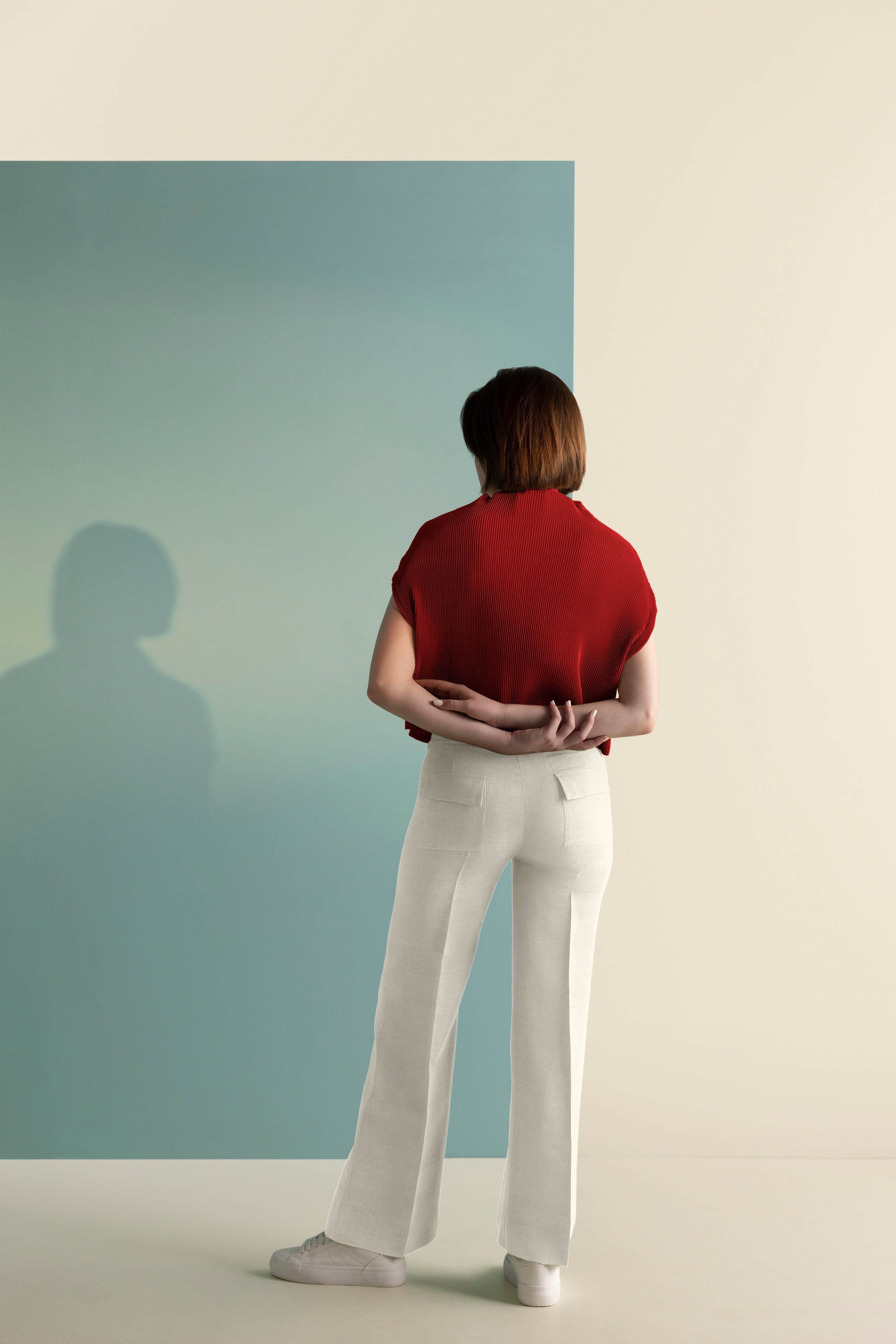 Please note, our pleated garments may arrive with temp orary fold lines due to it being fiat - packed during shipping. To help release the creases, allow it to hang for a few hours.