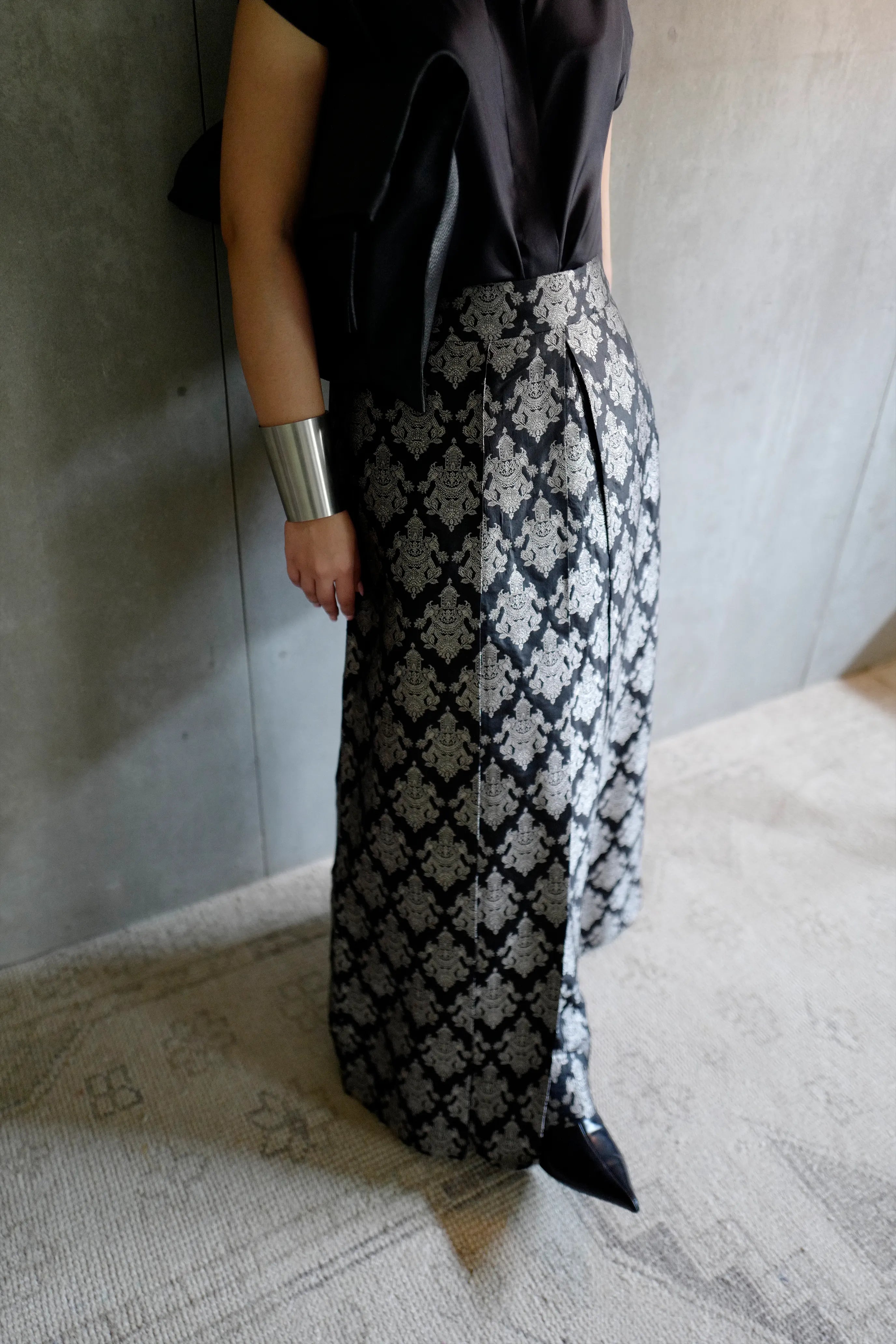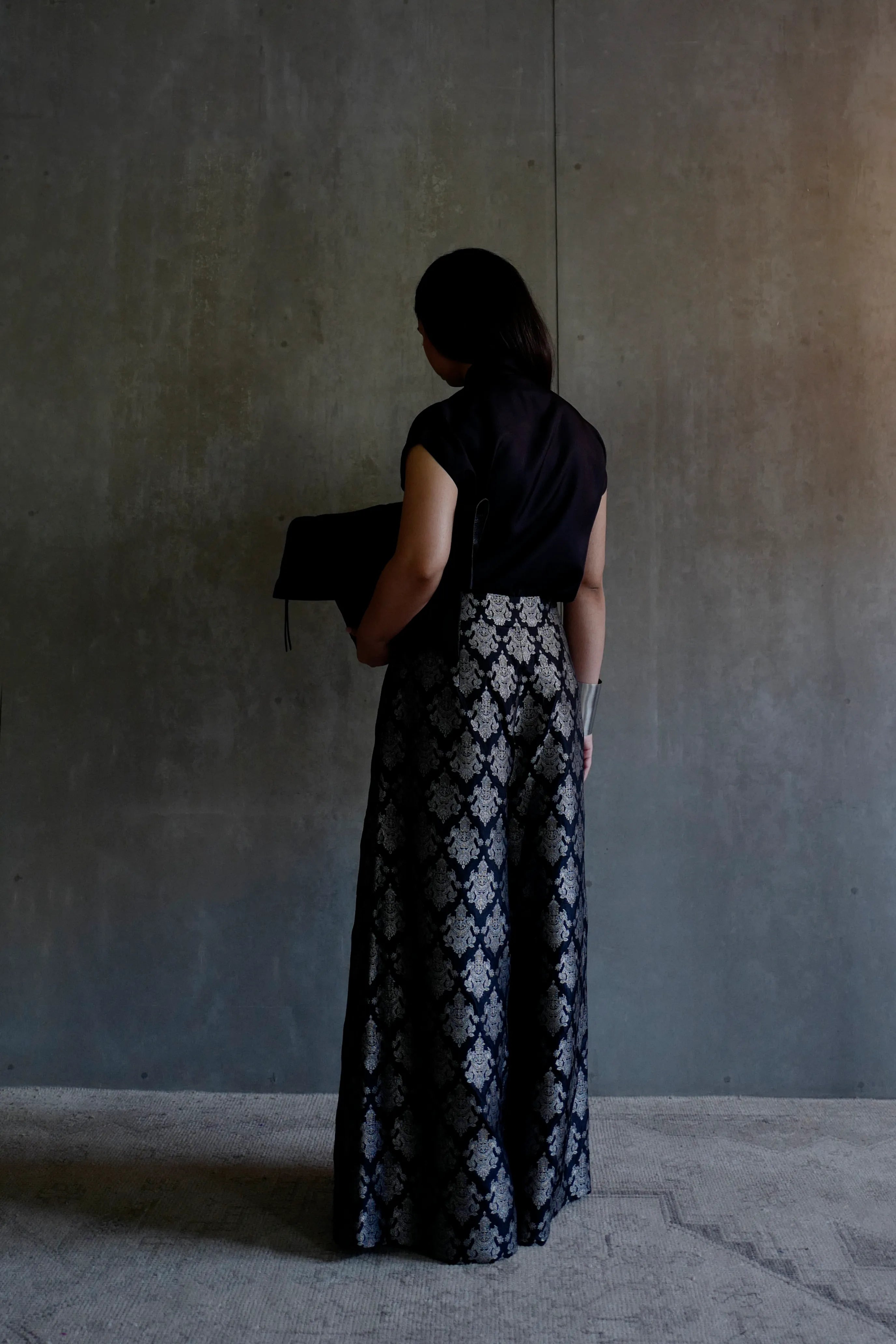 Designed with our signature floral motifs in silk brocade, this carefully constructed palazzo with deep pockets and angled pleats adds ease of movement while still maintaining the structure of its design.