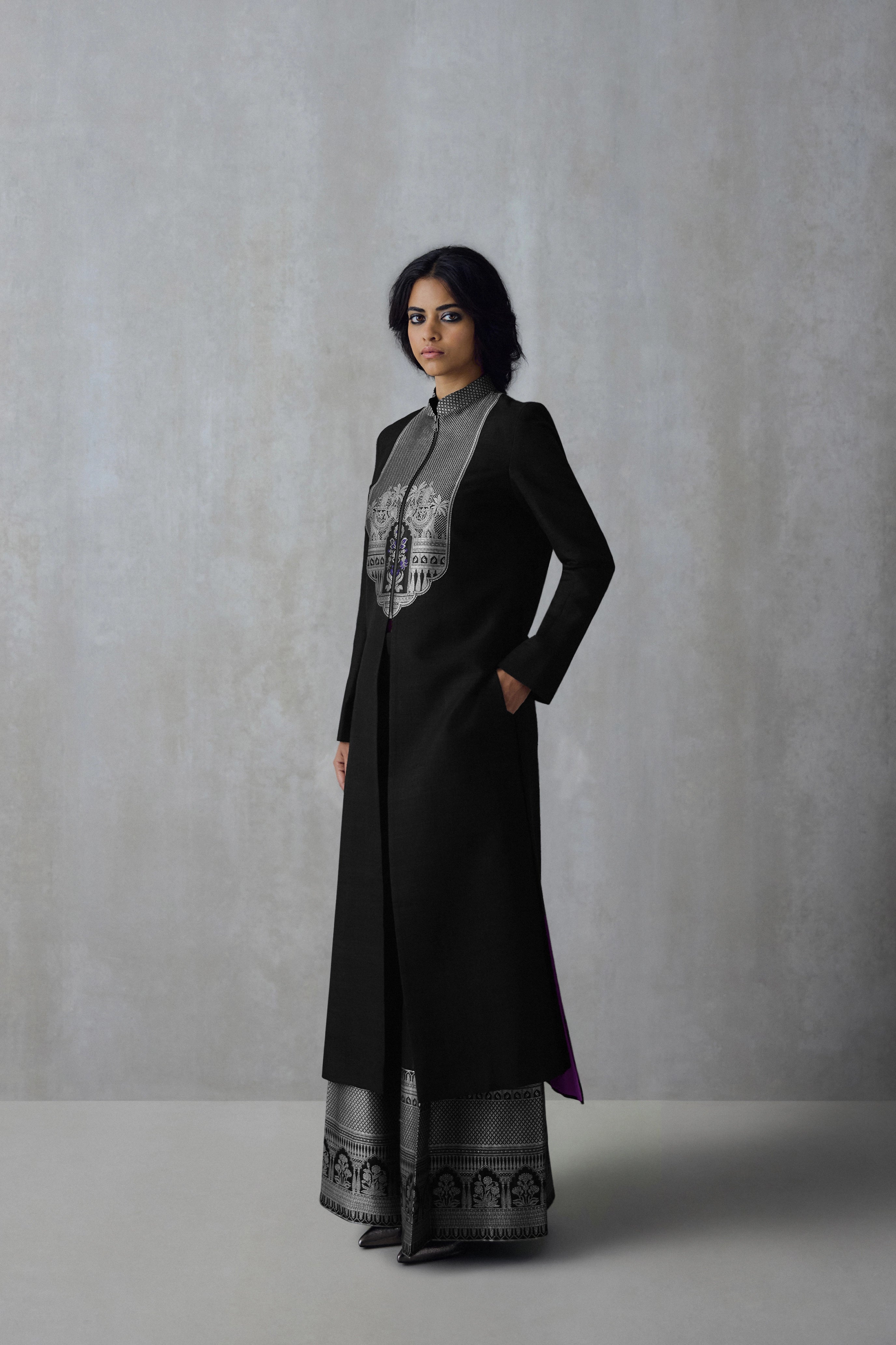 Designed for ease of movement and all-day comfort, this palazzo is handwoven in silk and features pockets for utility. It is finished with our signature brocade detailing at the hem.