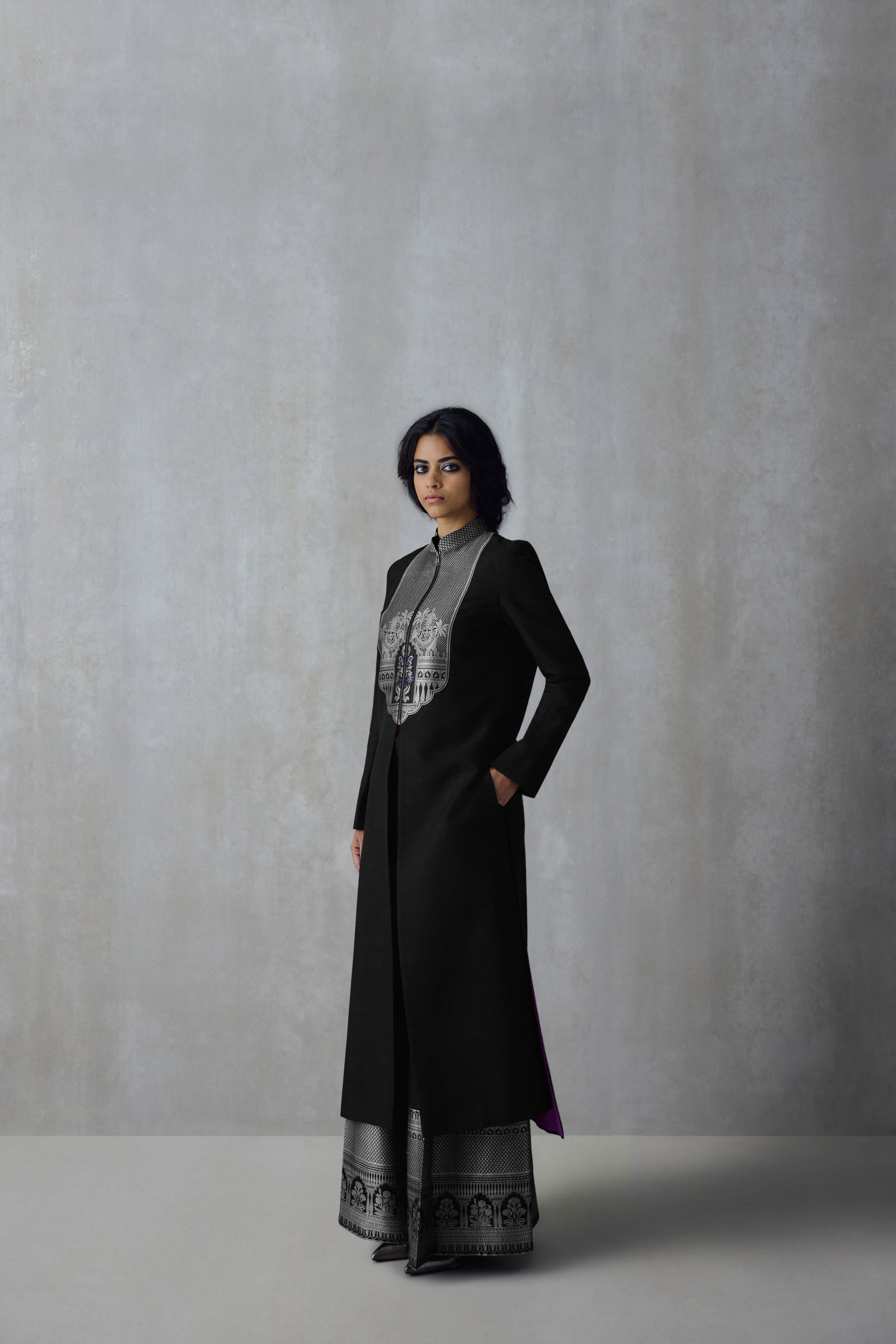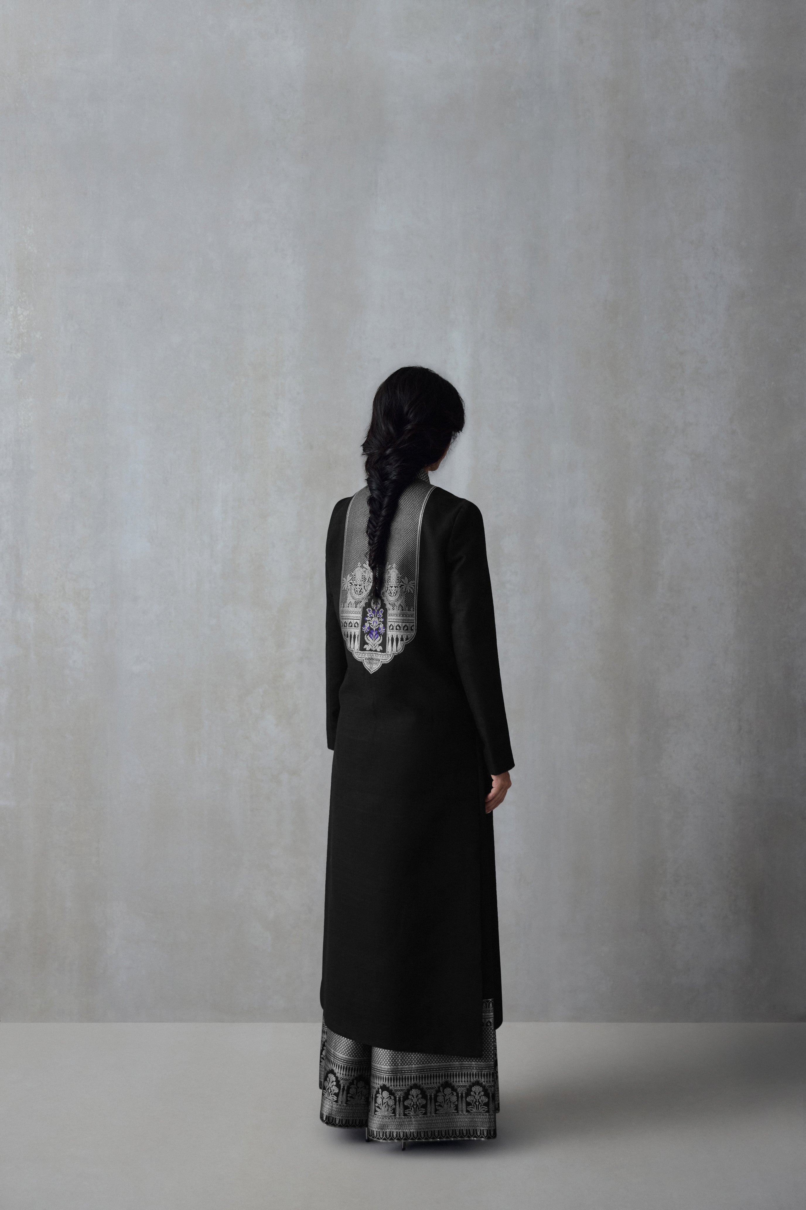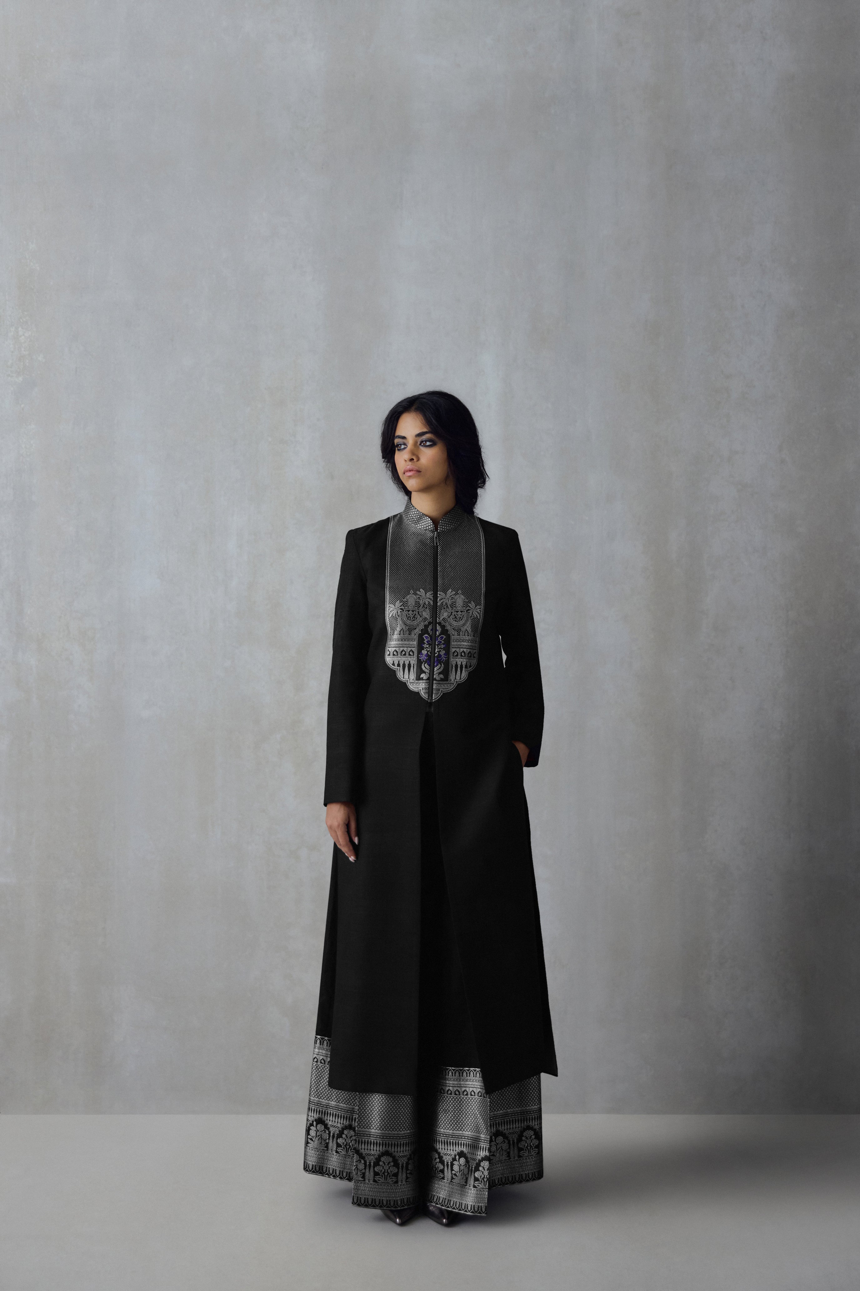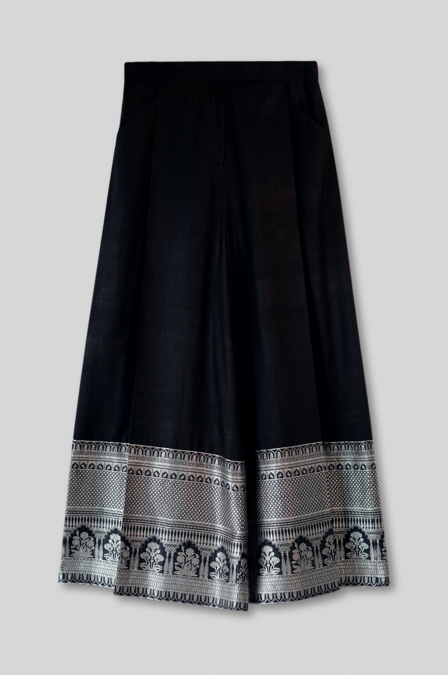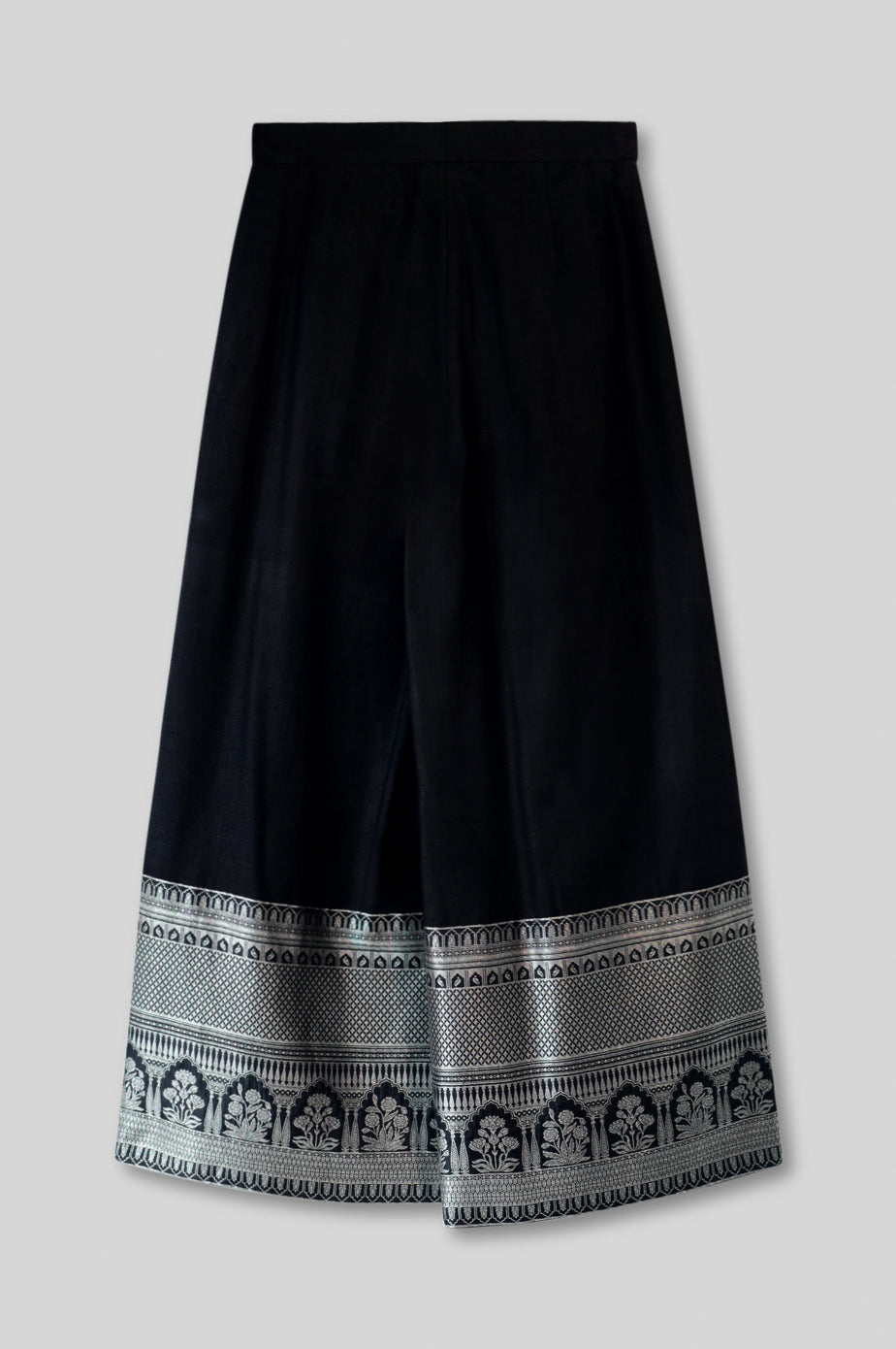 Designed for ease of movement and all-day comfort, this palazzo is handwoven in silk and features pockets for utility. It is finished with our signature brocade detailing at the hem.