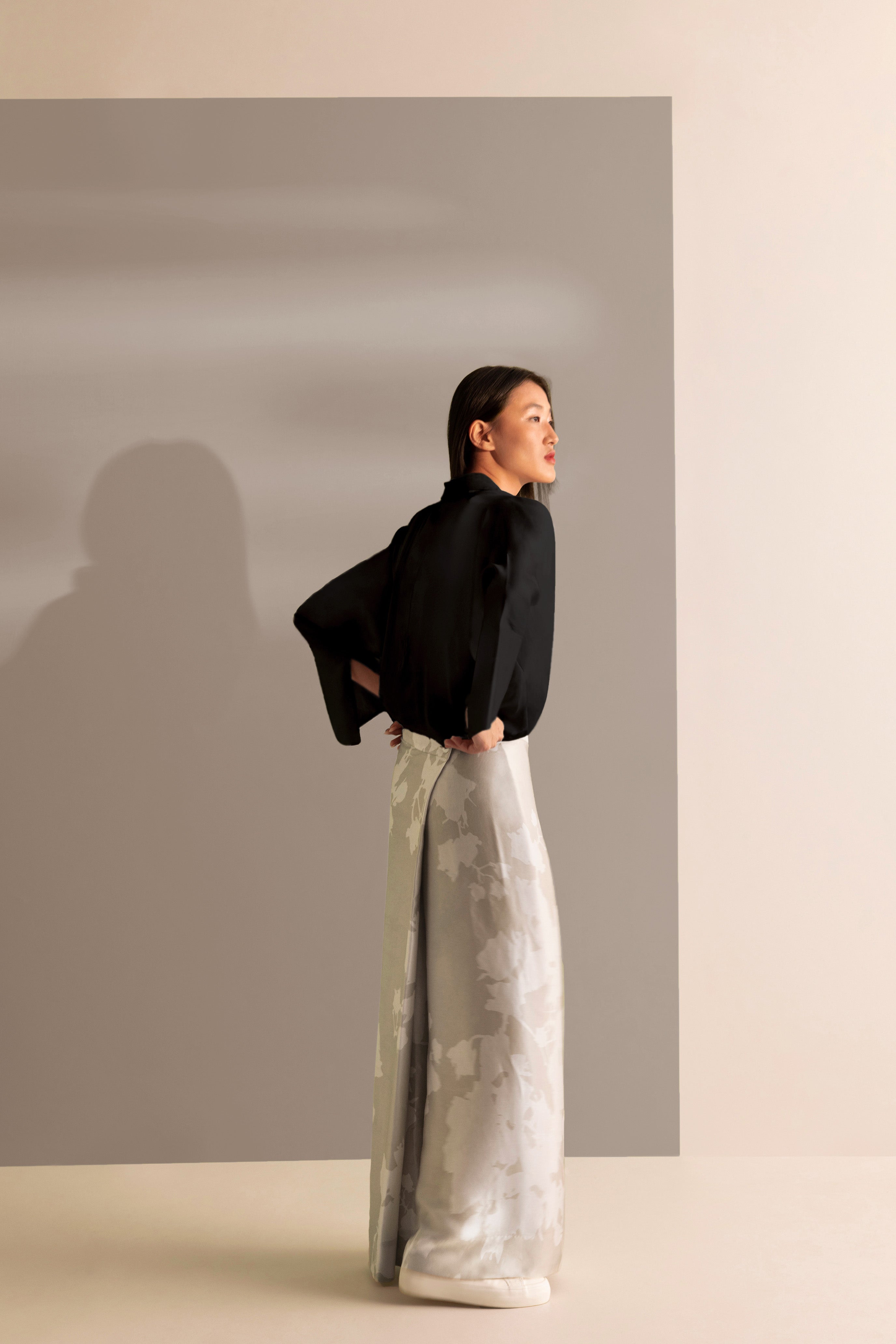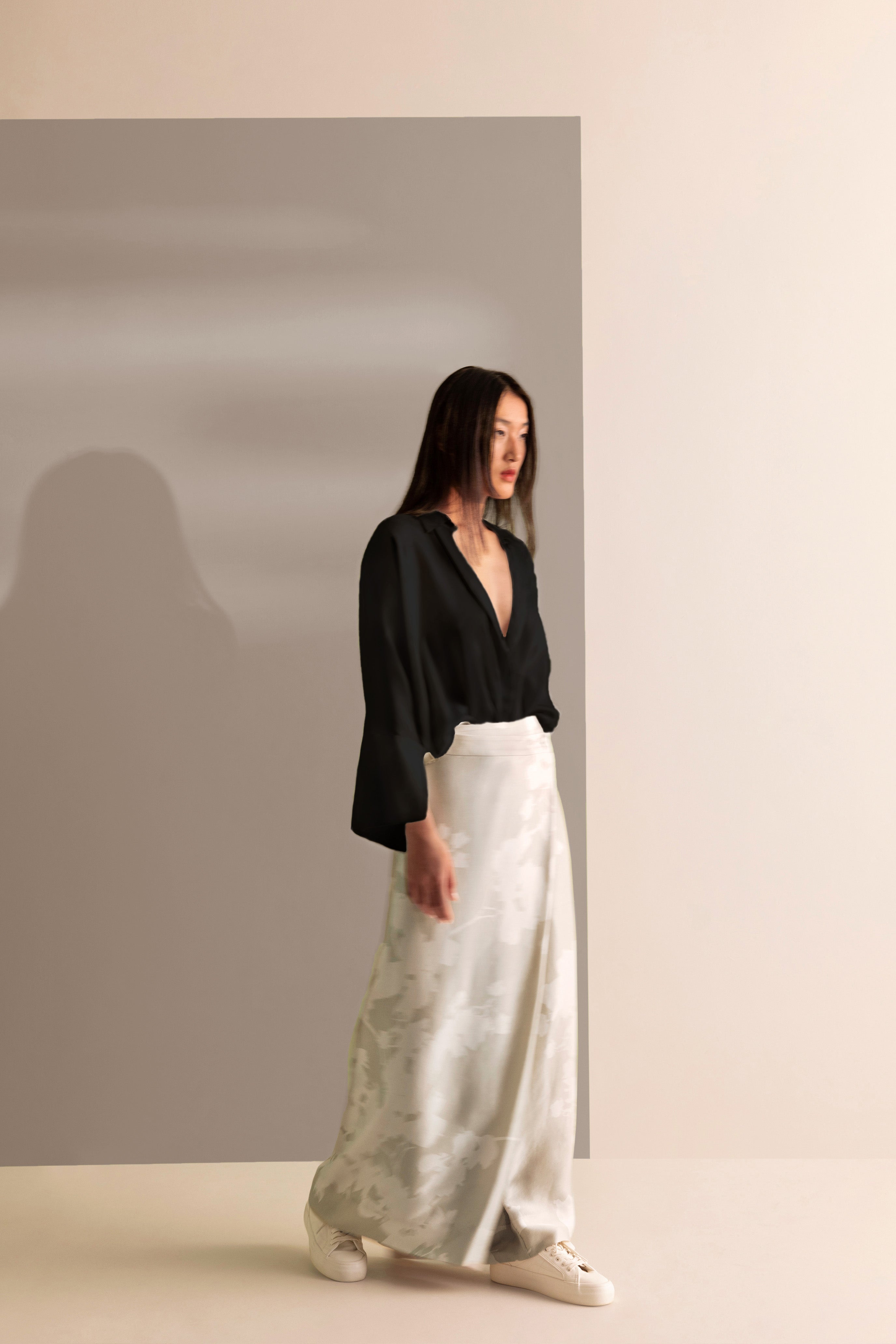 The sharp shirt collar and concealed button placket in lightweight silk makes it not just elegant but also comfortable to wear to a variety of events.