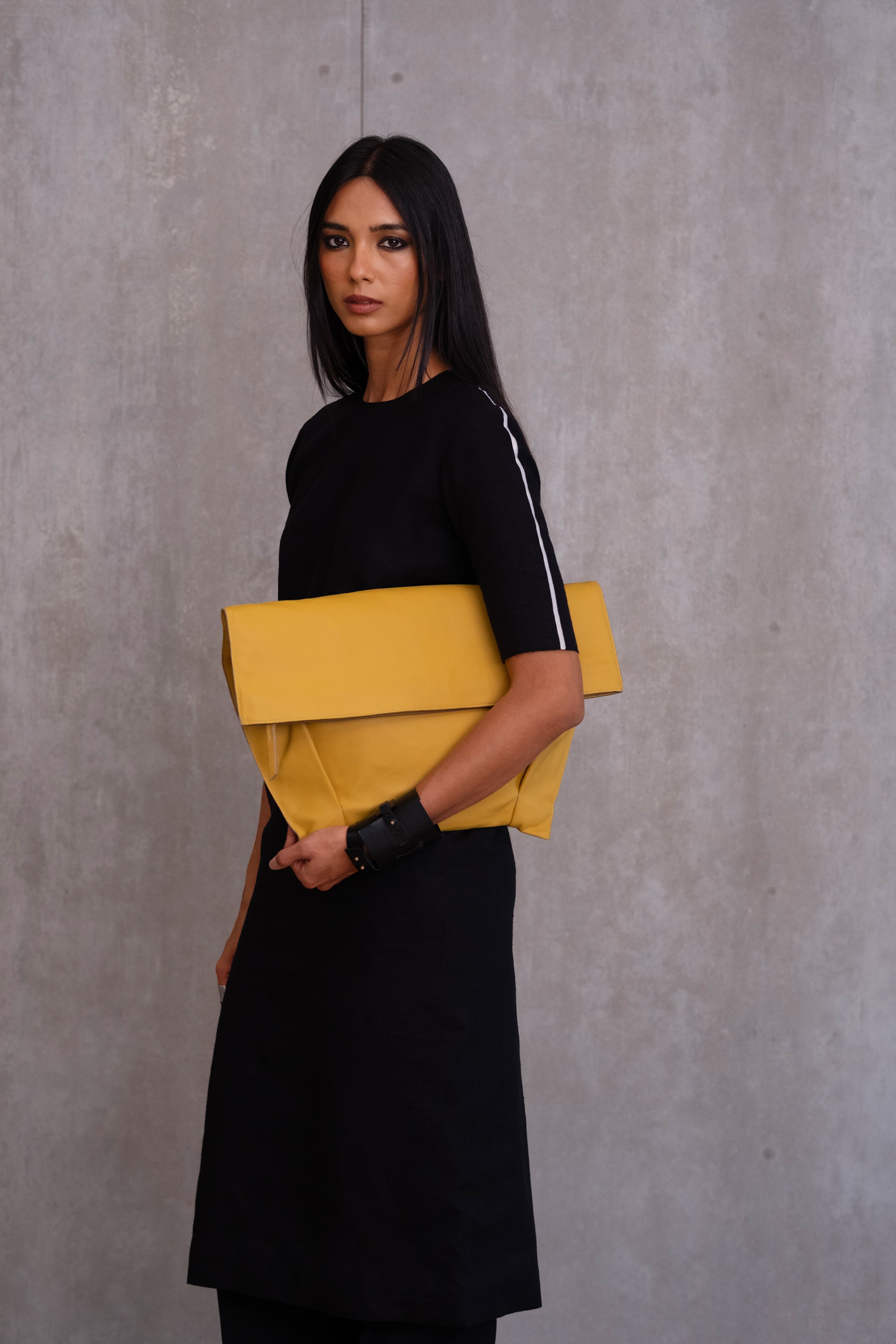 Handwoven in silk, this minimal, slim-fit dress is designed with a clean bodice and a subtle contrasting detail along the neck and arms. It is finished with pockets for comfort, a concealed zipper and a centre-back slit for ease of movement. Style it with our coordinated trousers or denims for added versatility.
