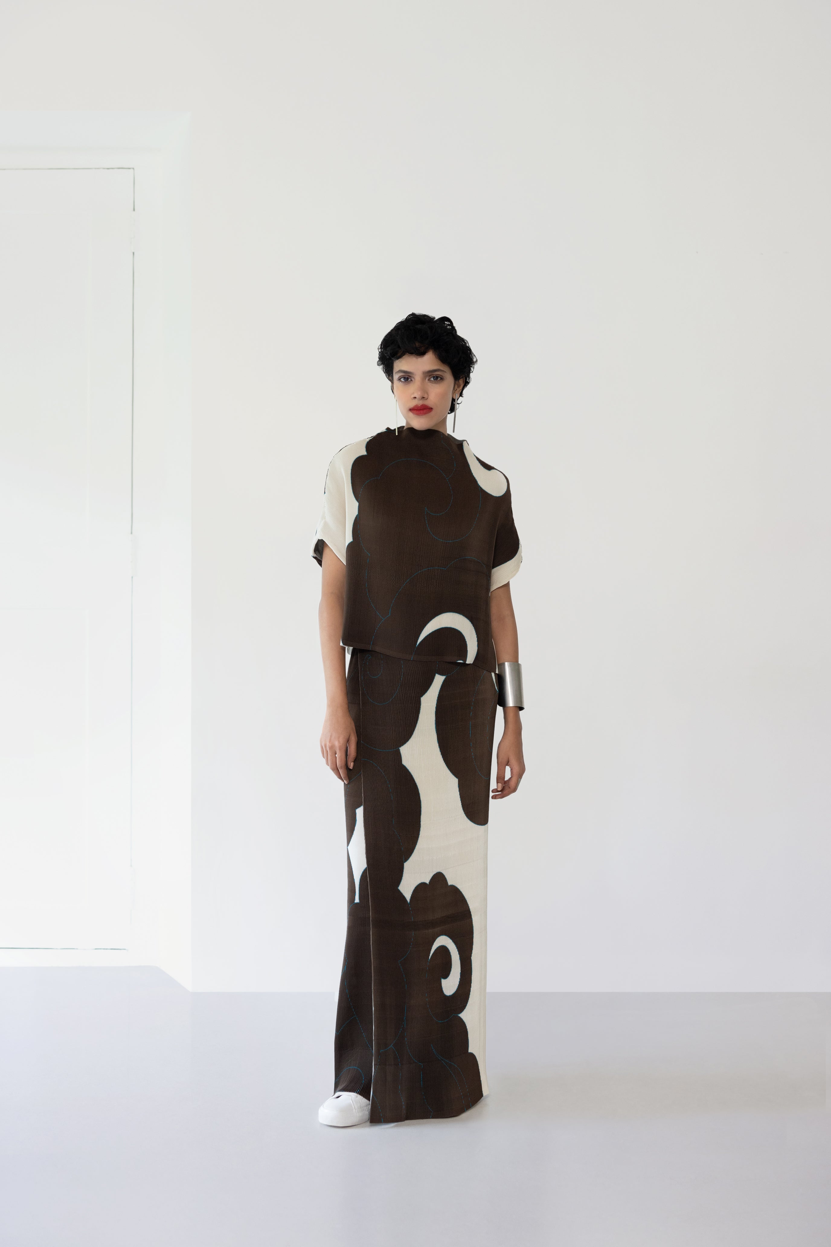 Sizing: Please note, that the top is a free-size garment and the skirt is dual-sized (S/M and L/XL). The model is 5'8½" (174 cms), and is wearing a S/M sized skirt with a one-size top.