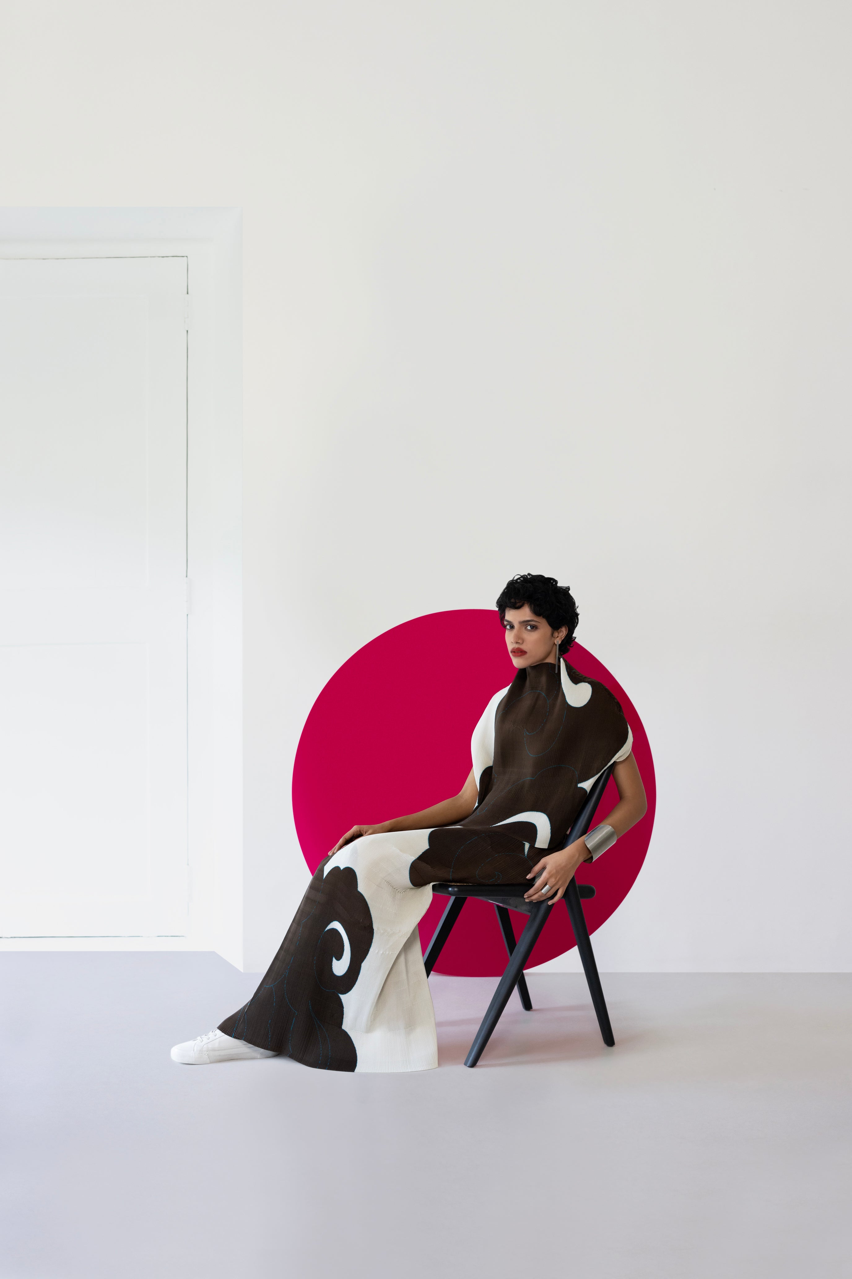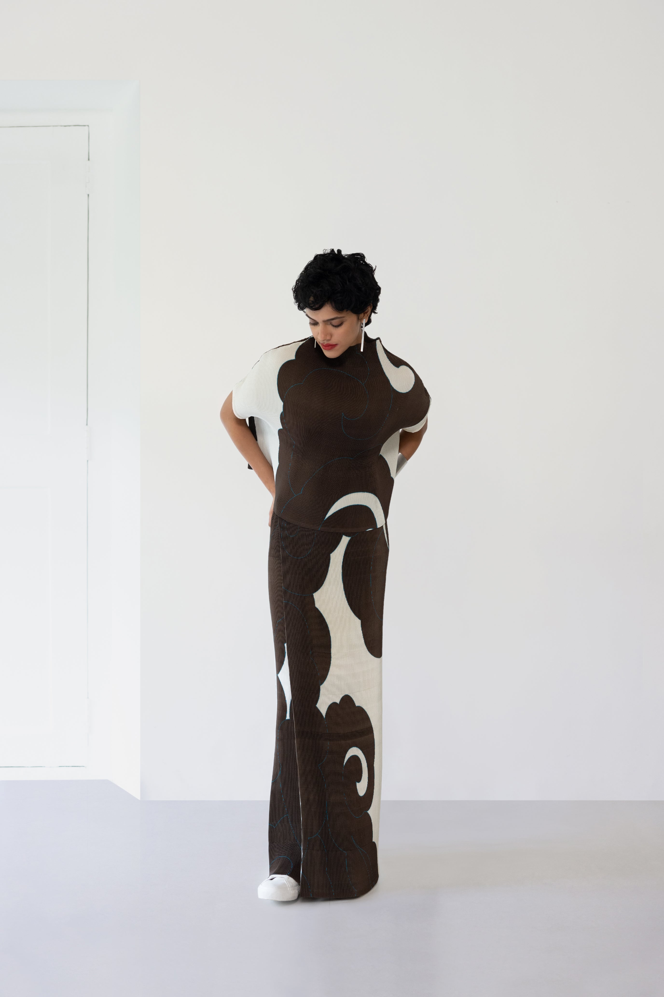 A relaxed pleated top with a coordinatedwrap skirt that is equally comfortable as it is dramatic. It overlaps with a button closure and features a partially elasticated waist at the back for maximum comfort.