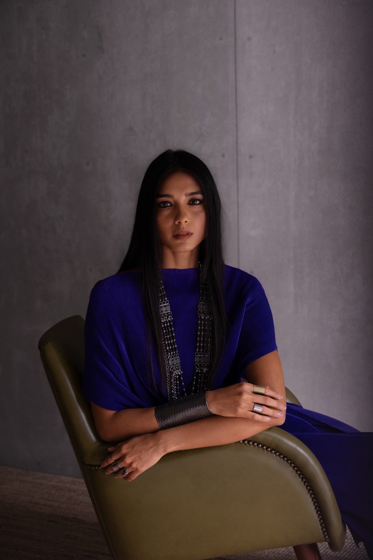 Sizing: The model is 5'10” (178 cms) and wears sample size. The garment available for purchase is designed for height 5’4” (163 cms).