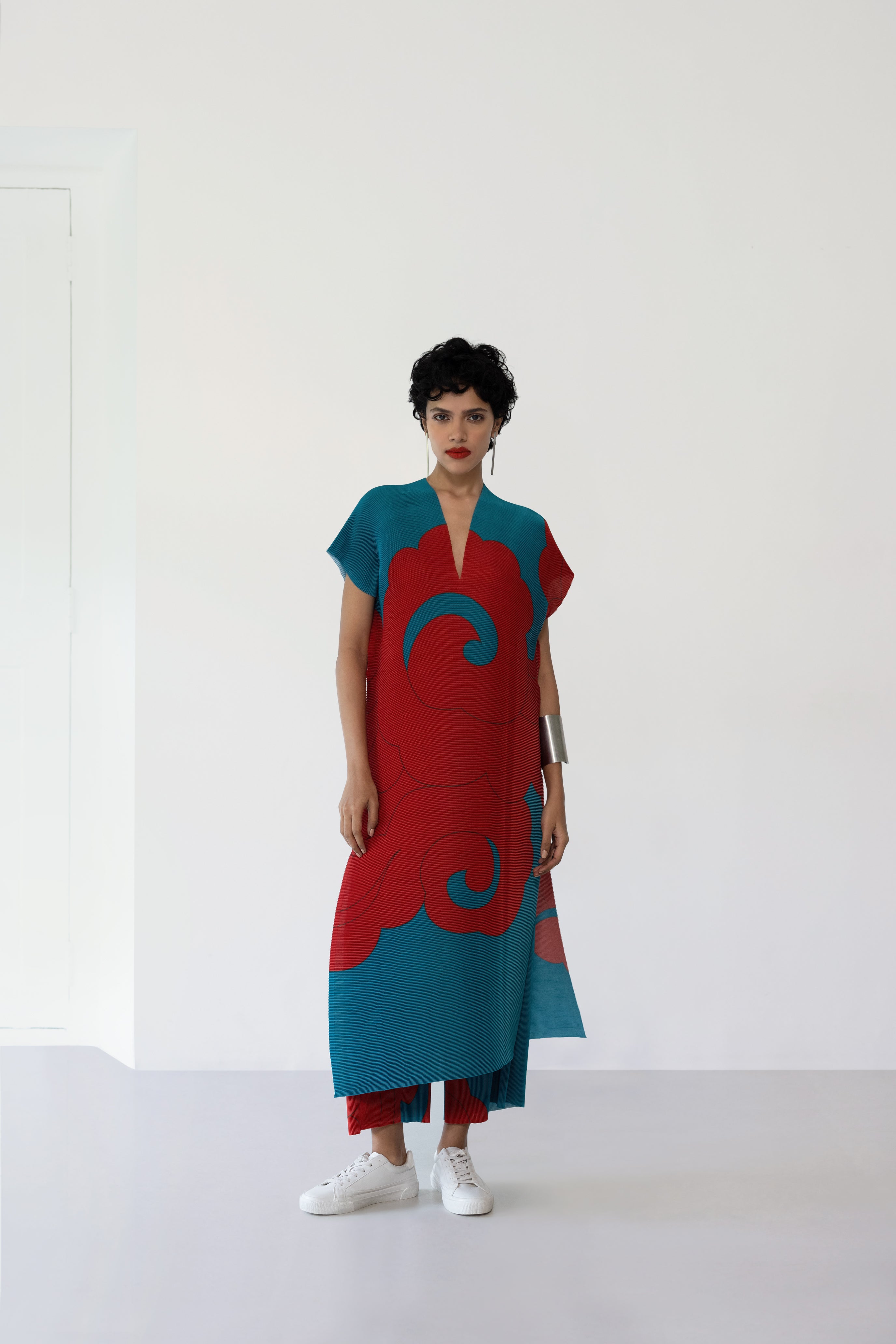 Pleated V-Neck Tunic Set