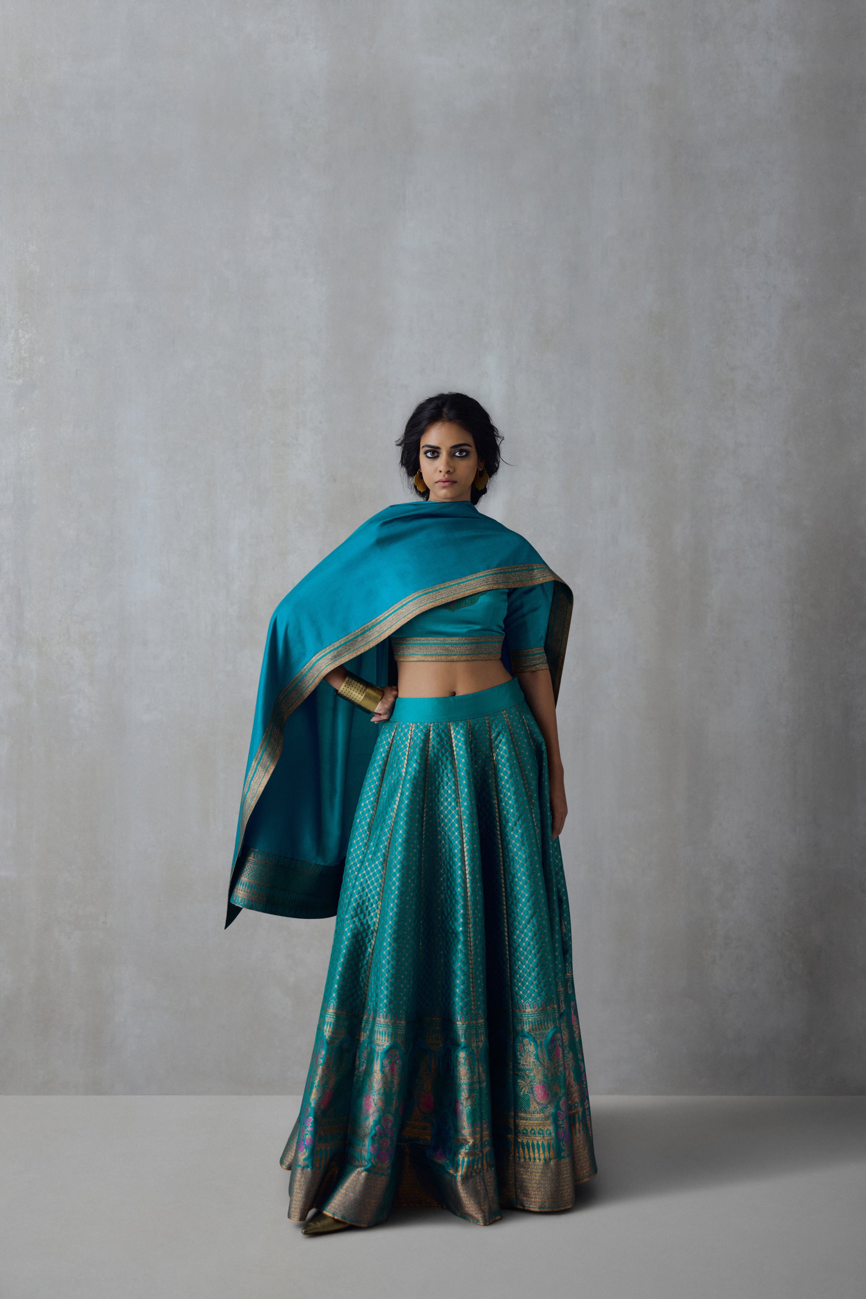 Sizing: The model is 5'8" (173 cms) and is wearing a small size skirt. The garment available for purchase is designed for a height of 5’4”.