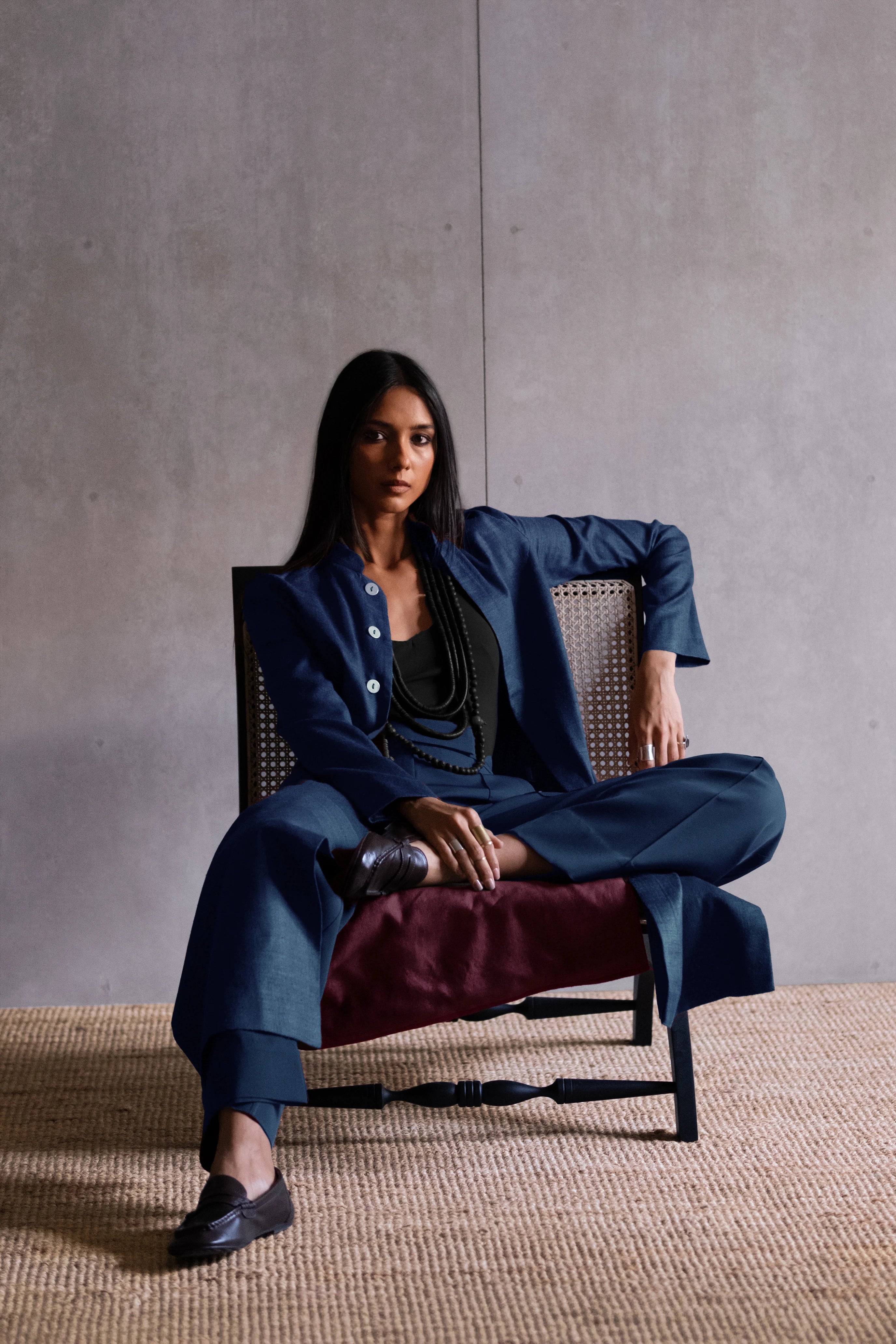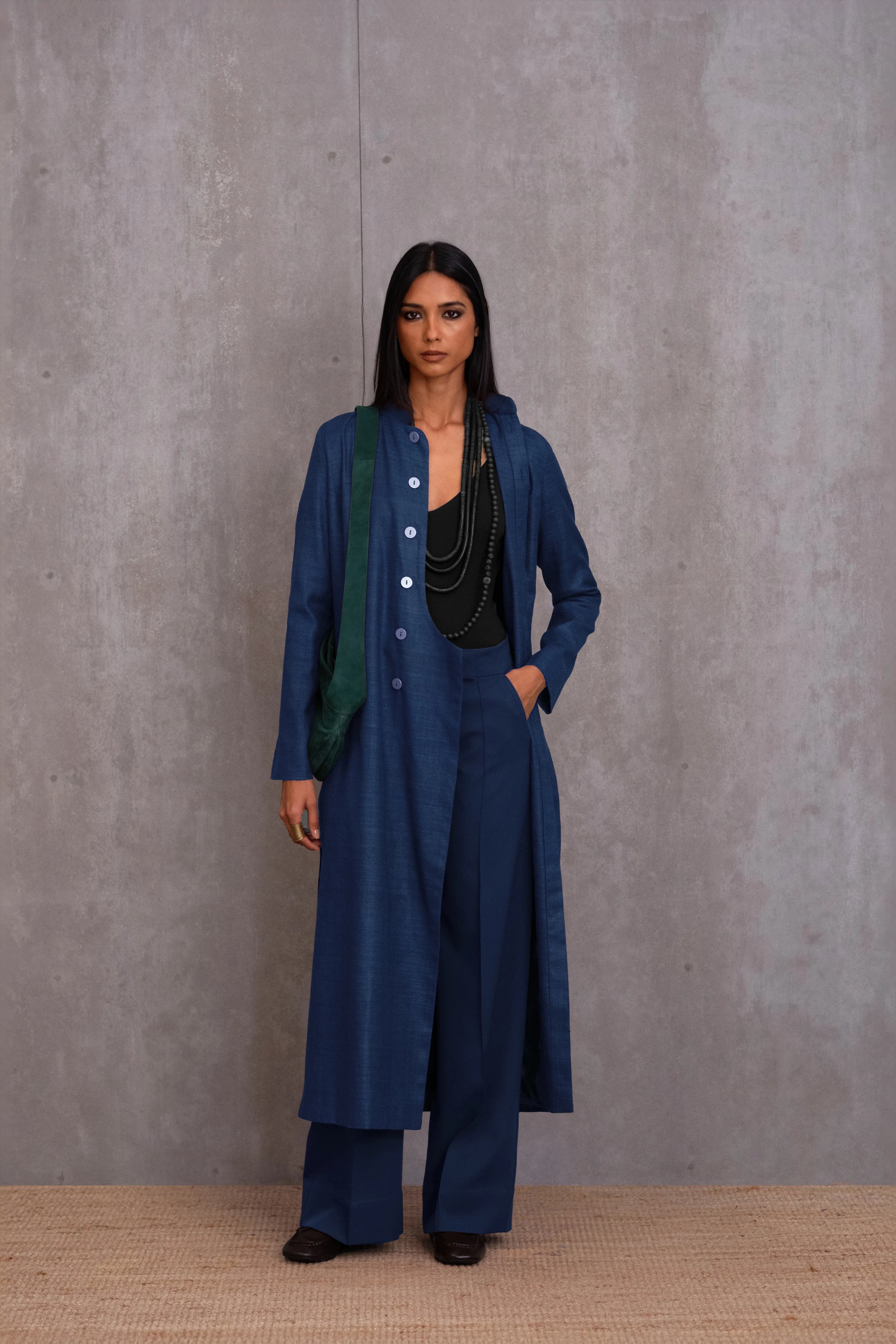Sizing: The model is 5'10” (178 cms) and wears size S. The garment available for purchase is designed for height 5’4” (163 cms).