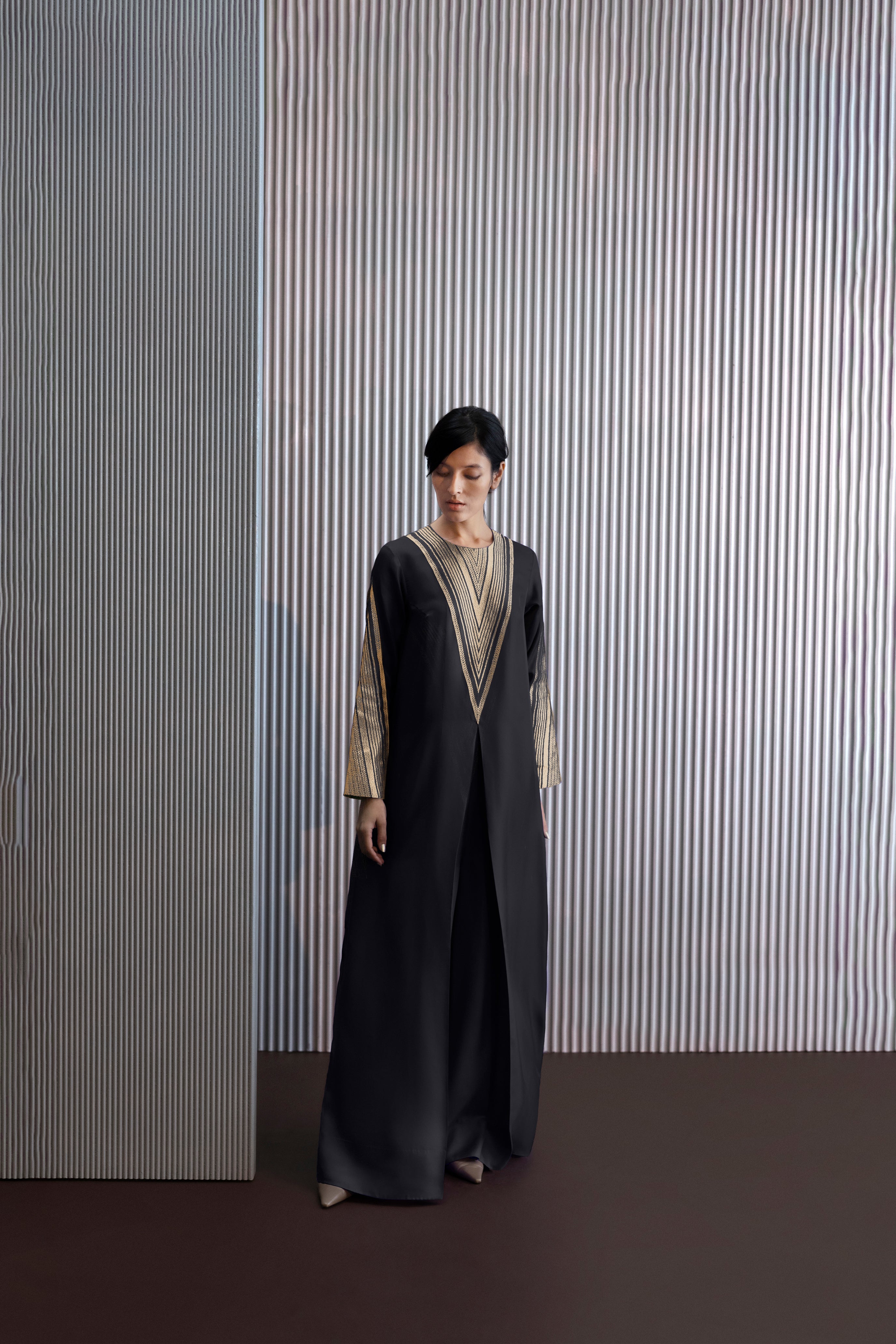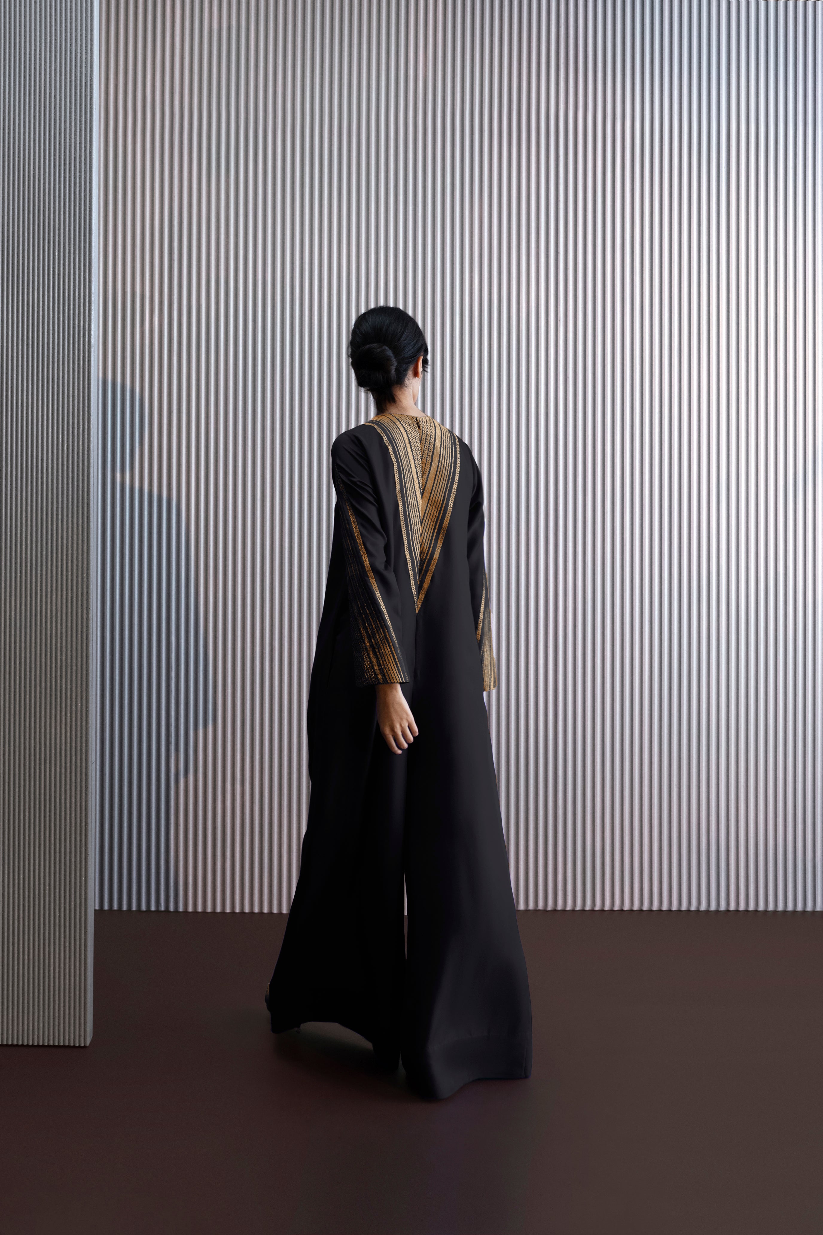 It is finished with a pleated detail that lends both structure and ease of movement.
