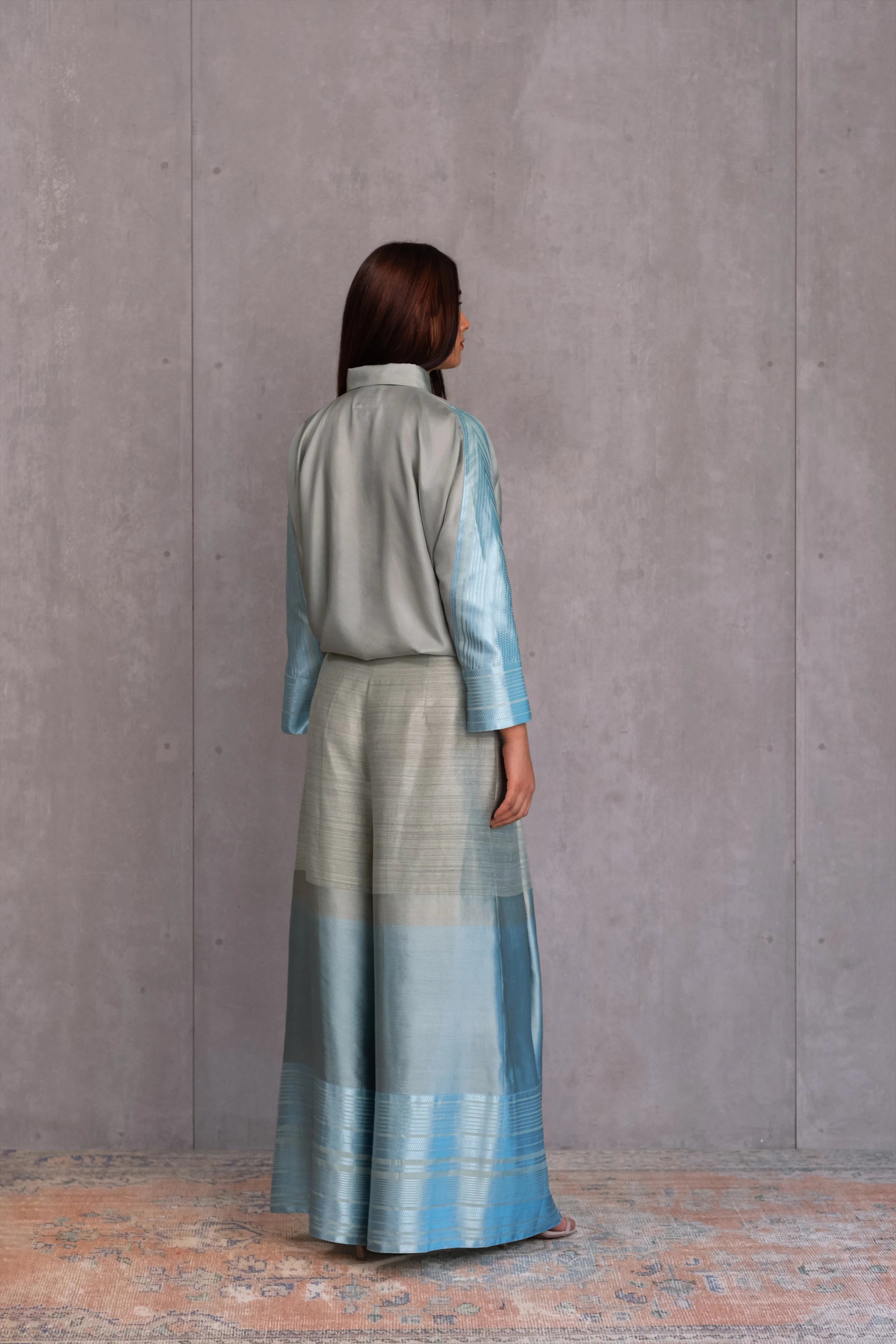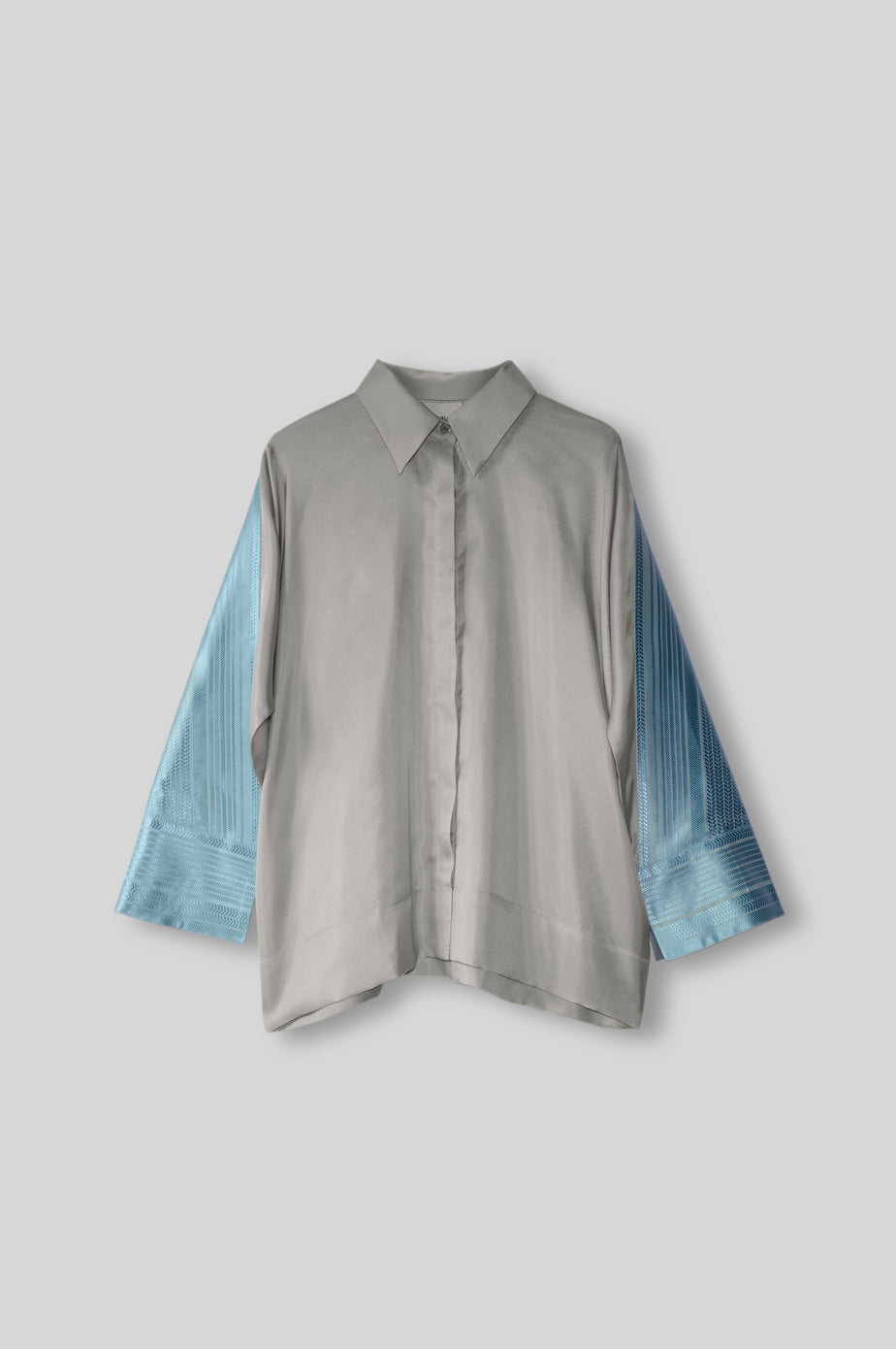 A relaxed-fit shirt, crafted in lightweight silk, featuring brocade details and a concealed button placket.
