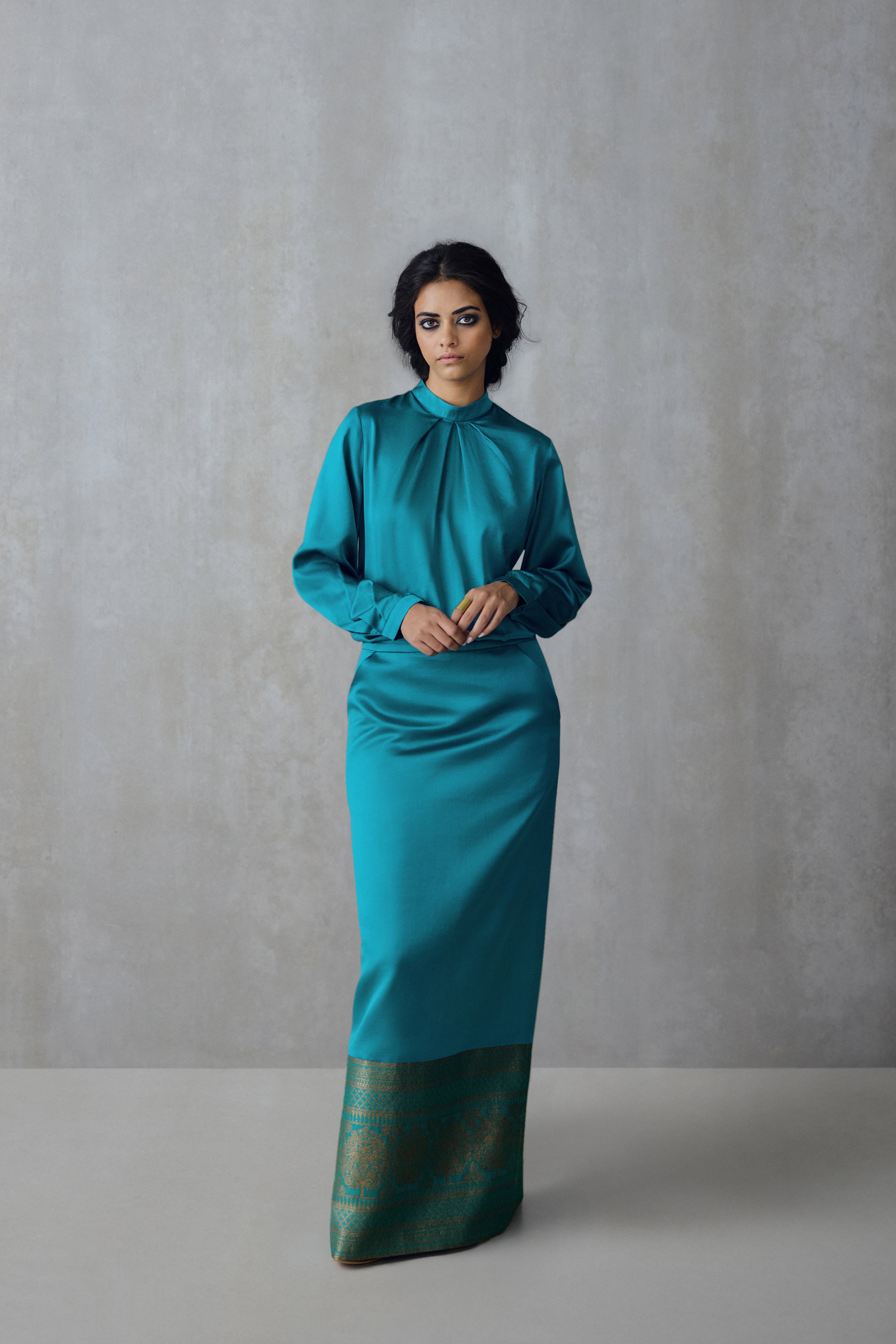 Sizing: The model is 5'8" (173 cms) and is wearing a small size blouse. The garment available for purchase is designed for a height of 5’4”.