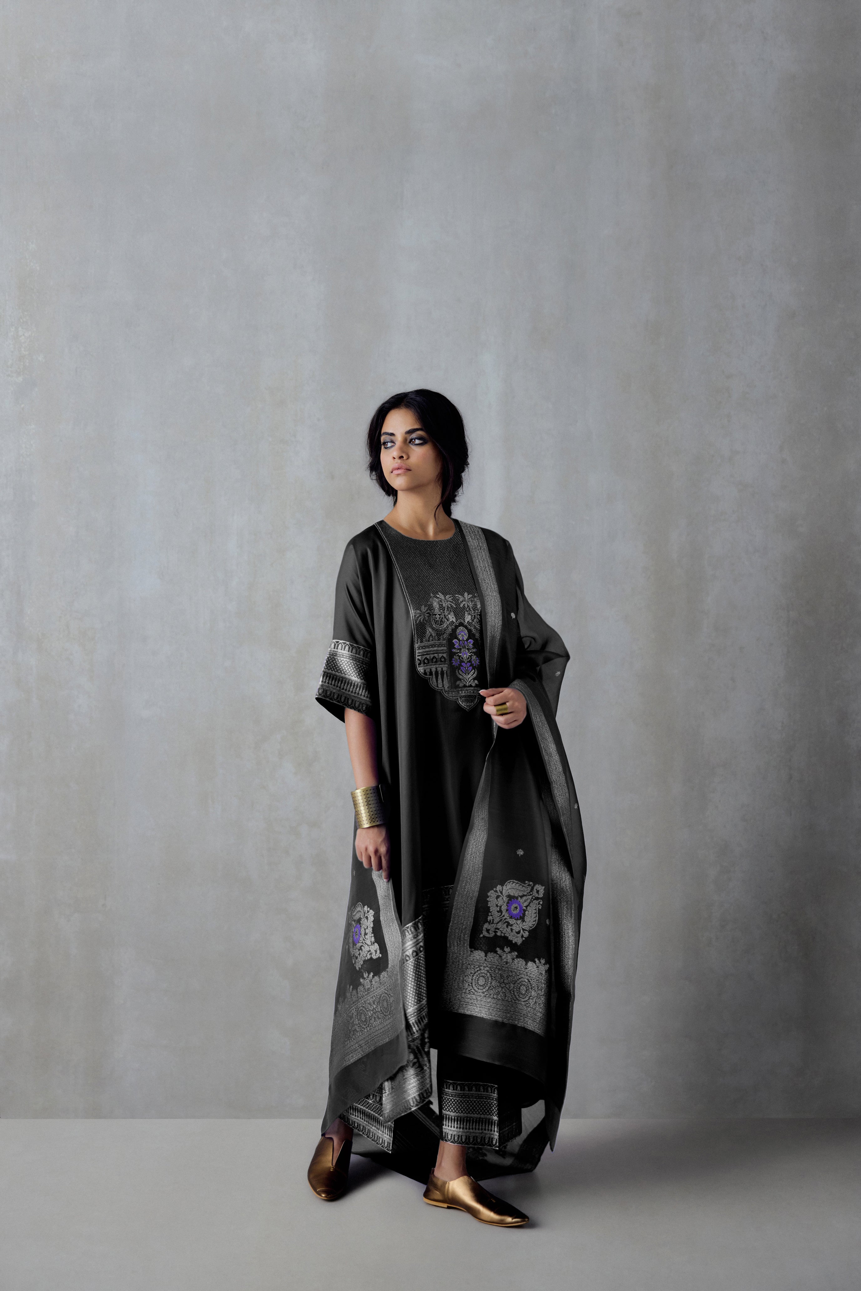 Sizing: The model is 5'8" (173 cms) and is wearing a free size tunic and free size lounge pant. The garment available for purchase is designed for a height of 5’4”.